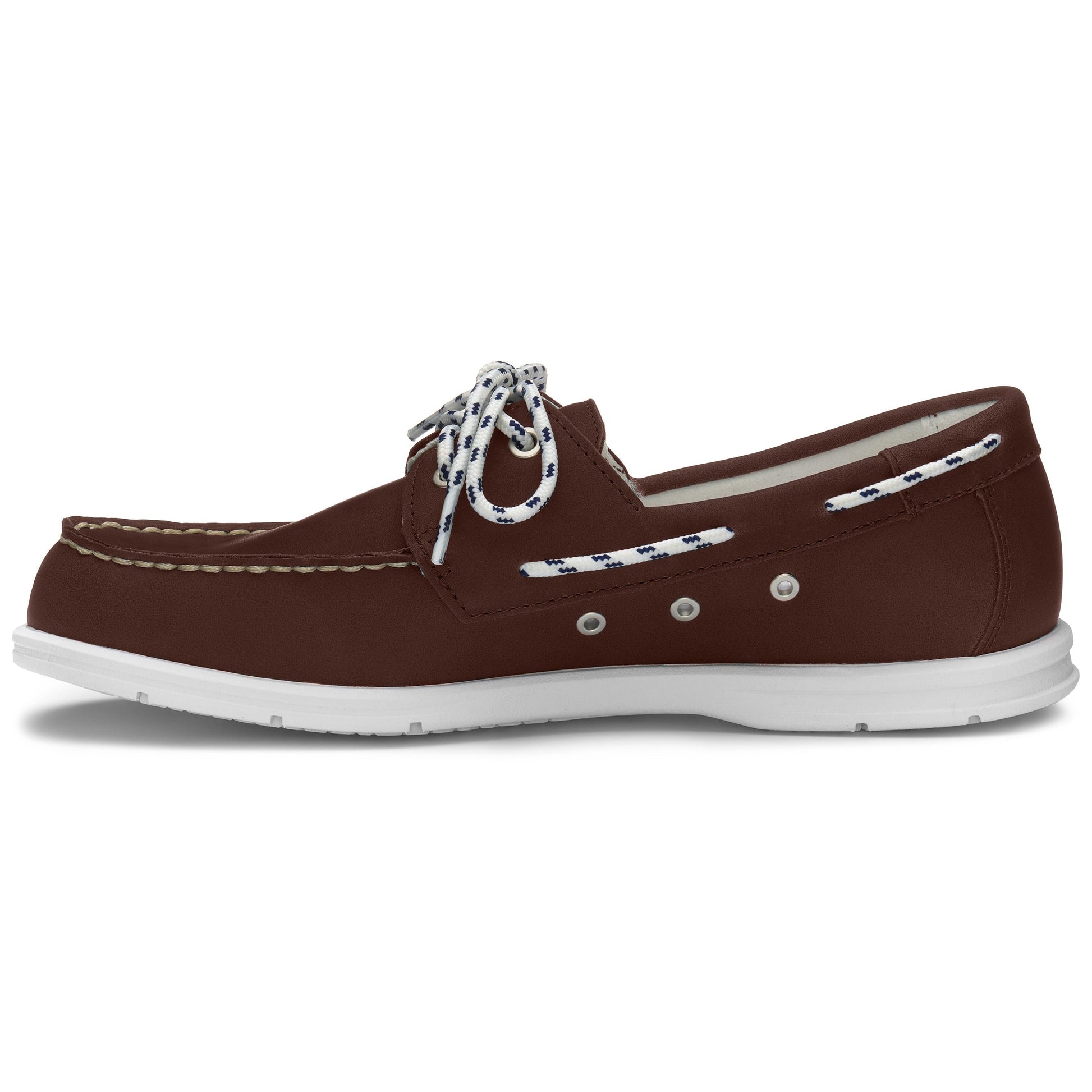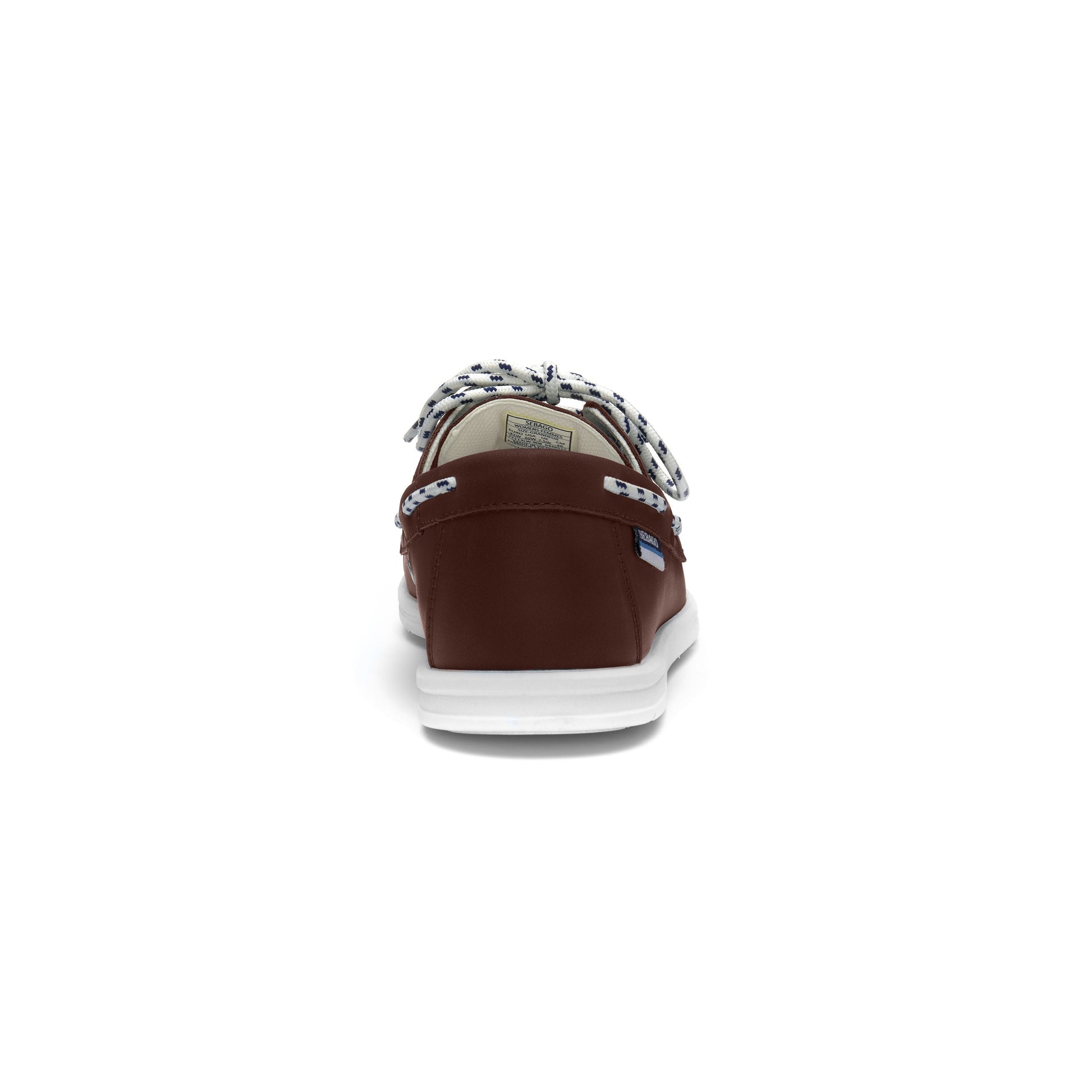 The Jackman boat shoe recounts Sebago's history, intrinsically linked to our close relationship with the sea and the great outdoors. Carefully engineered to guarantee a comfy fit and optimal resistance against wear and water, it is characterized by an innovative cemented Strobel construction for a lightweight, flexible feel. Meanwhile, the synthetic leather upper is treated with oils and waxes for an ultra-sleek appearance. Two-tone nylon laces reminiscent of sailing knots round off the design with a graphic touch.